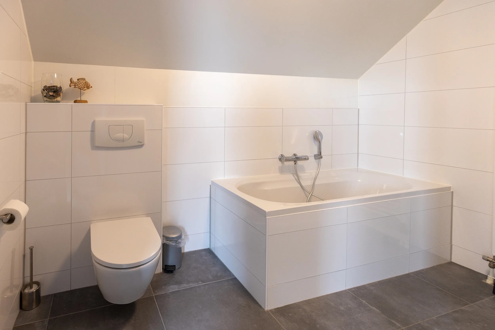 - 2 badkamers: boven met ligbad en beneden met inloopdouche